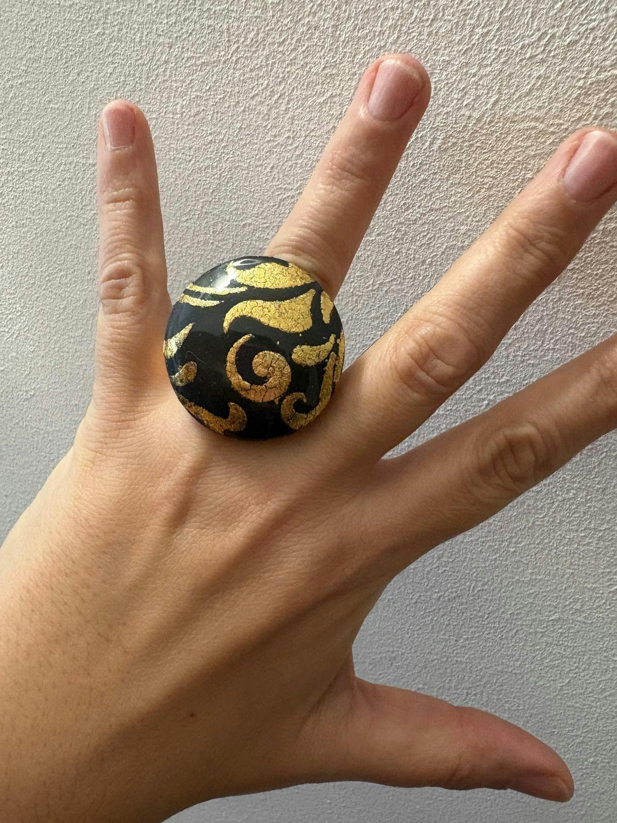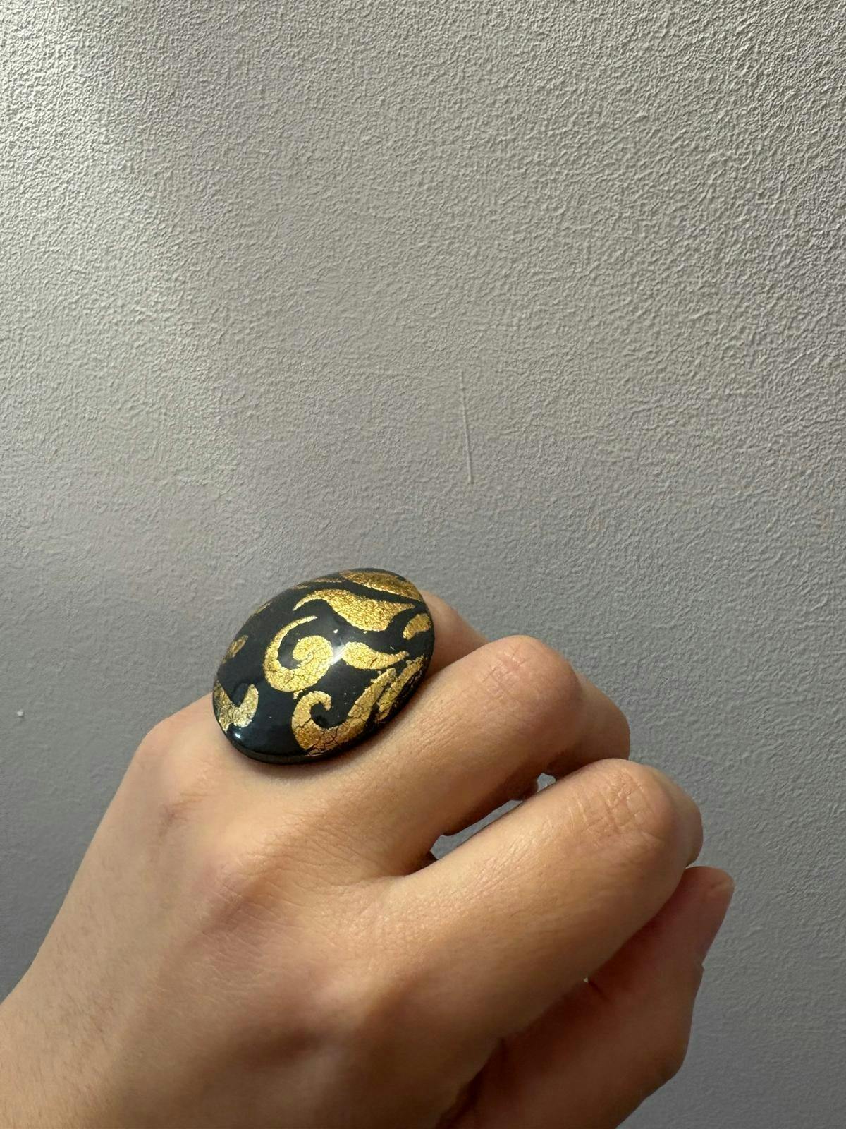 L'Anello Barocca Grigio e Oro è un pezzo statement che unisce il fascino antico alla modernità del design grafico. Realizzato a mano in Sicilia, evoca l'eleganza barocca e la ricchezza decorativa della tradizione siciliana con una palette sofisticata grigio-oro.