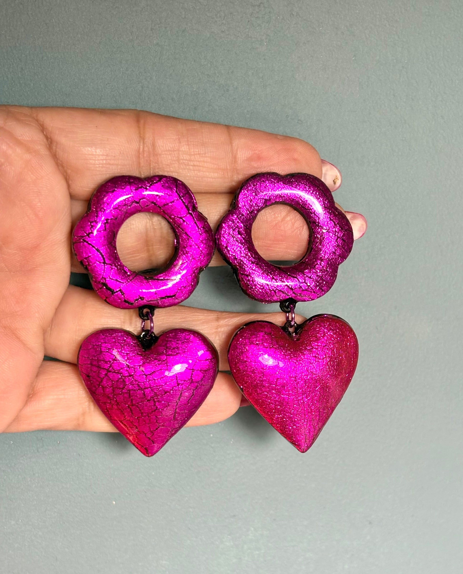 Orecchini Fucsia Linea Cracklè - Gioielli Artigianali Pendenti Siciliani